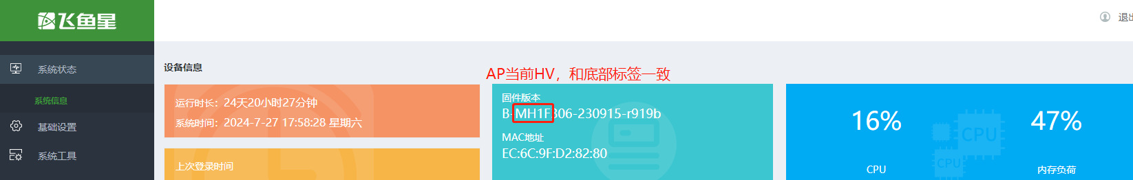 识别ap版本:注意ap的默认mac地址通常以“ec:6c:9f”开头。通过扫描得到的ip地址登录到ap的管理界面。