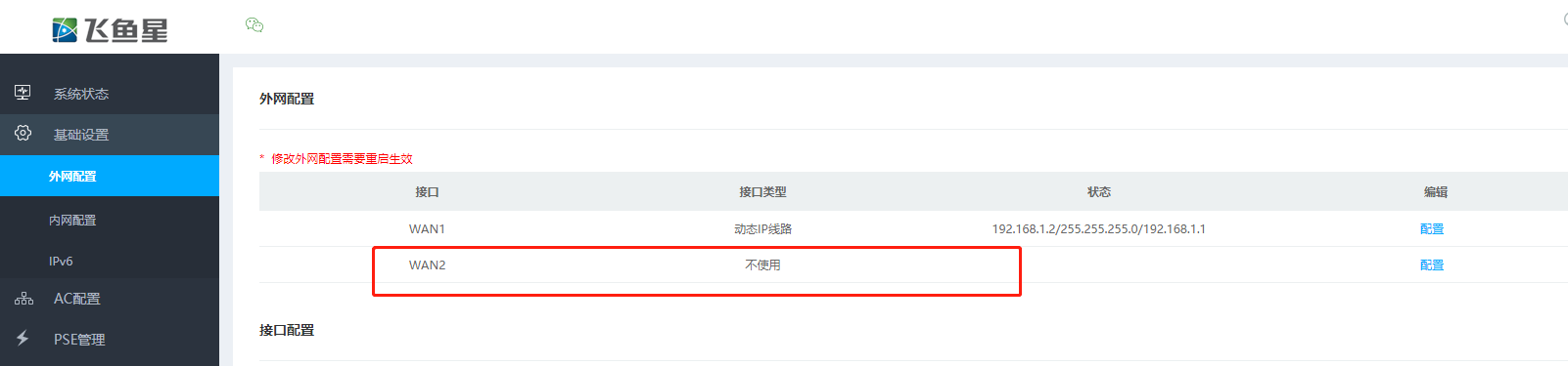 3、物理连接验证:检查ap上联口(如交换机)连接是否稳固,且上联设备至ac的通信路径畅通无阻。比如带poe口的一体化网关lan接口是否被配置了外网口导致无法做为内网口。
