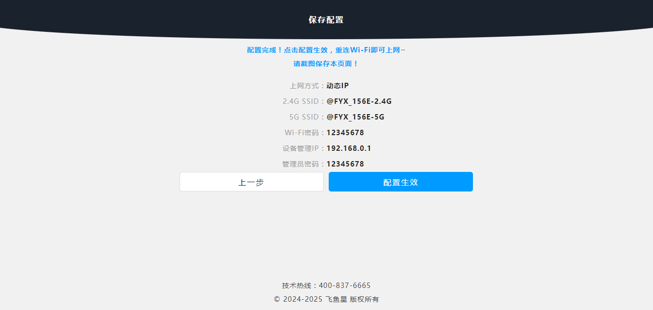 ③、等待设备重启完成后即可连接最新配置的网络上网。
