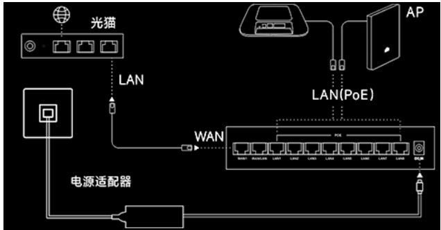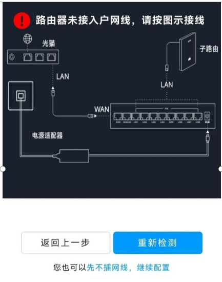 注意:如果wan口线路未连接请按照图示连接wan口线路后再点击“重新检测”。