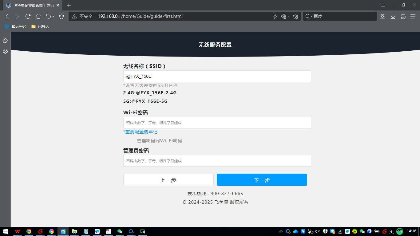 注意:管理员密码长度8~32位,建议注重安全性:同时包含数字 字母 特殊字符。
