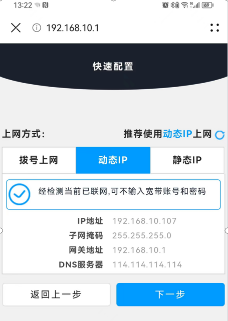 1、用户无线终端连接入网络后,系统默认名会自动弹出如下配置向导页即进入了向导流程,如未弹出,请打开浏览器输入网址跳转到登录界面。(如无ap,则可以用有线链接lan1口链接配置)